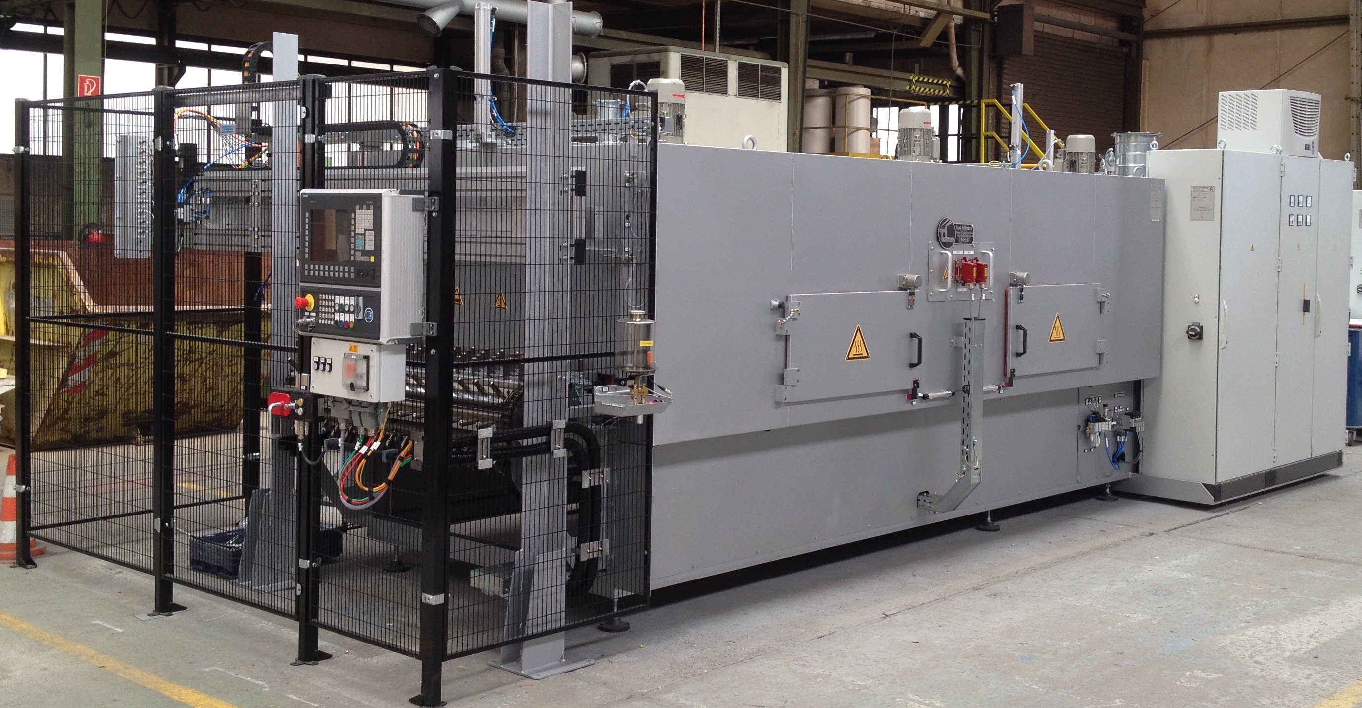 Der hier abgebildete Anlassofen dient der thermischen Behandlung von Bauteilen für die Ventilsteuerung von Verbrennungsmotoren und ghört zu einer Serie von Anlagen für einen bedeutenden Automobilhersteller.