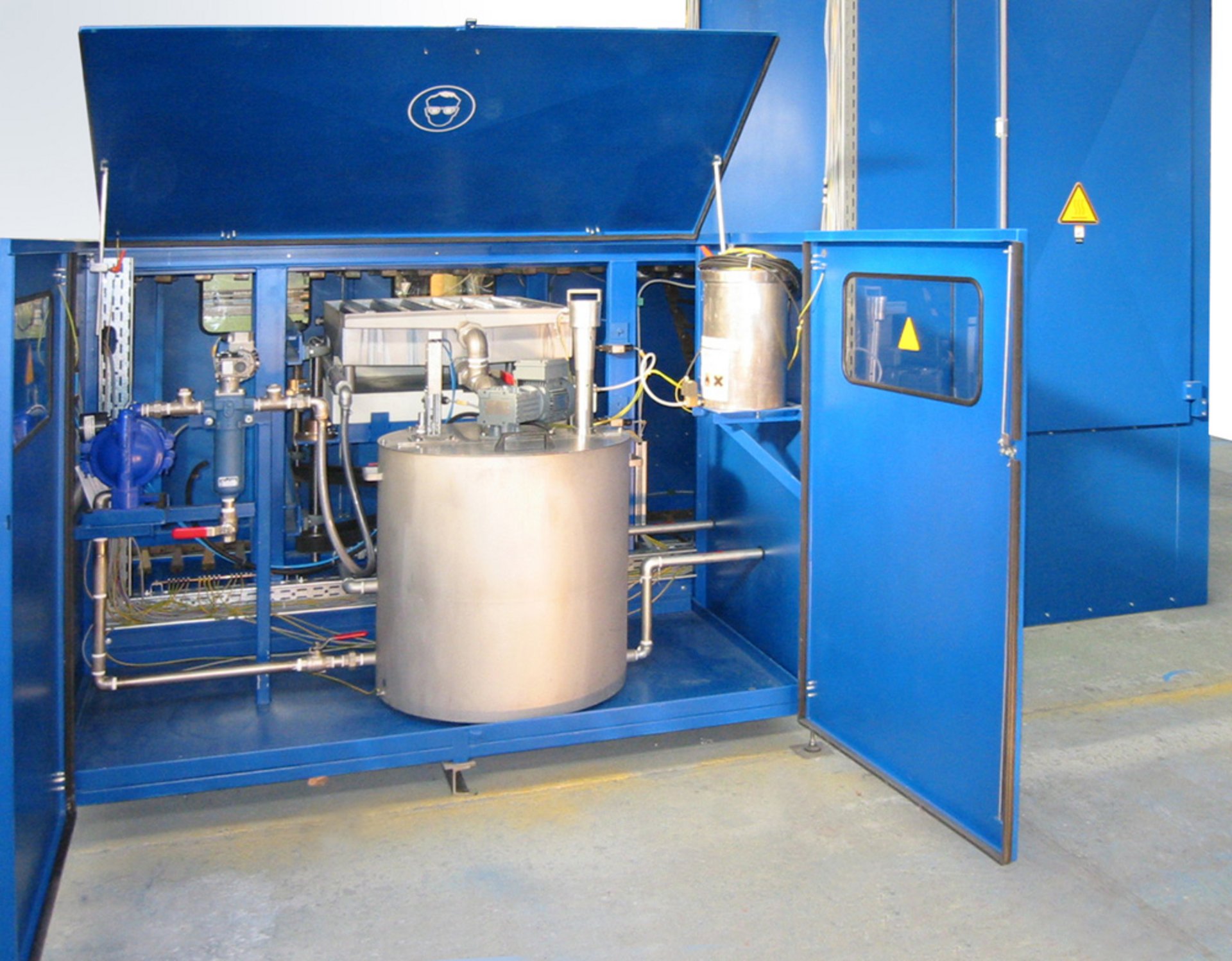 Um die geforderten Beschichtungsquantitäten zu erreichen und den Beschichtungsstoff effektiv zu handhaben, ist die Anlagentechnik gezielt angepasst worden. Ein Bewegungsprofil-management verhindert Ablagerungen von Feststoffen im Tauchbecken und im Farbbehälter. Das Tauchbecken wurde für Wartungszwecke gut zugänglich gestaltet und ist hinsichtlich aller, für das Beschichtungsergebnis notwendigen Parameter (z.B. Volumen- und Oberflächenverhältnis, Fließgeschwindigkeit des Beschichtungsstoffes), optimiert worden.