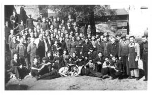 Die polnisch-deutsche Belegschaft im Werk Sosnowitz/Oberschlesien.